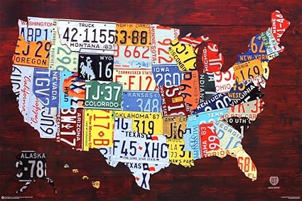 Amazon.com: License Plate Map of the United States Poster 36 x License Plate Map Of The Usa On Blue Wood Boards Mixed Media by .