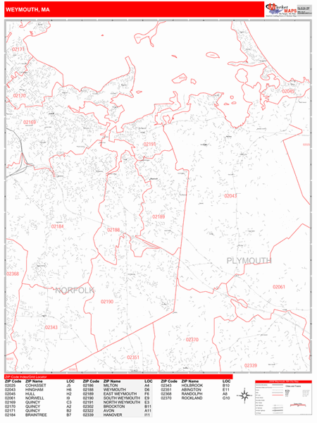 Amazon.com: ZIP Code Wall Map of Weymouth, MA ZIP Code Map Weymouth Massachusetts Zip Code Wall Map (Red Line Style) by .