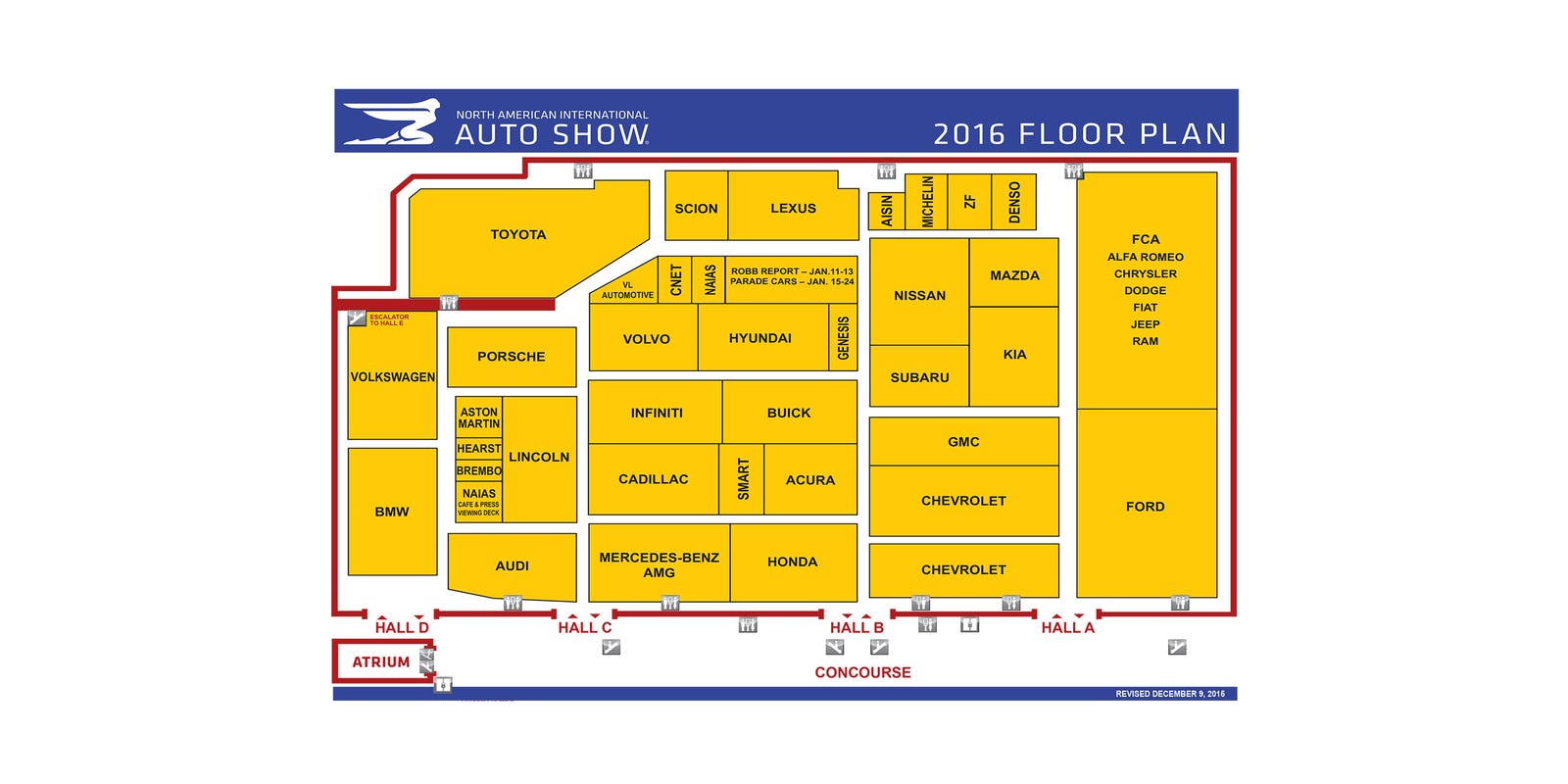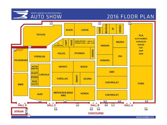 Map your Detroit auto show visit: 2016 floor plan Detroit Auto Show Inside Map.