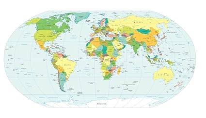 High detail Vector Illustration of the world map. With Political World Political Boundary Maps (50 17" x 11"), Golden Educational .
