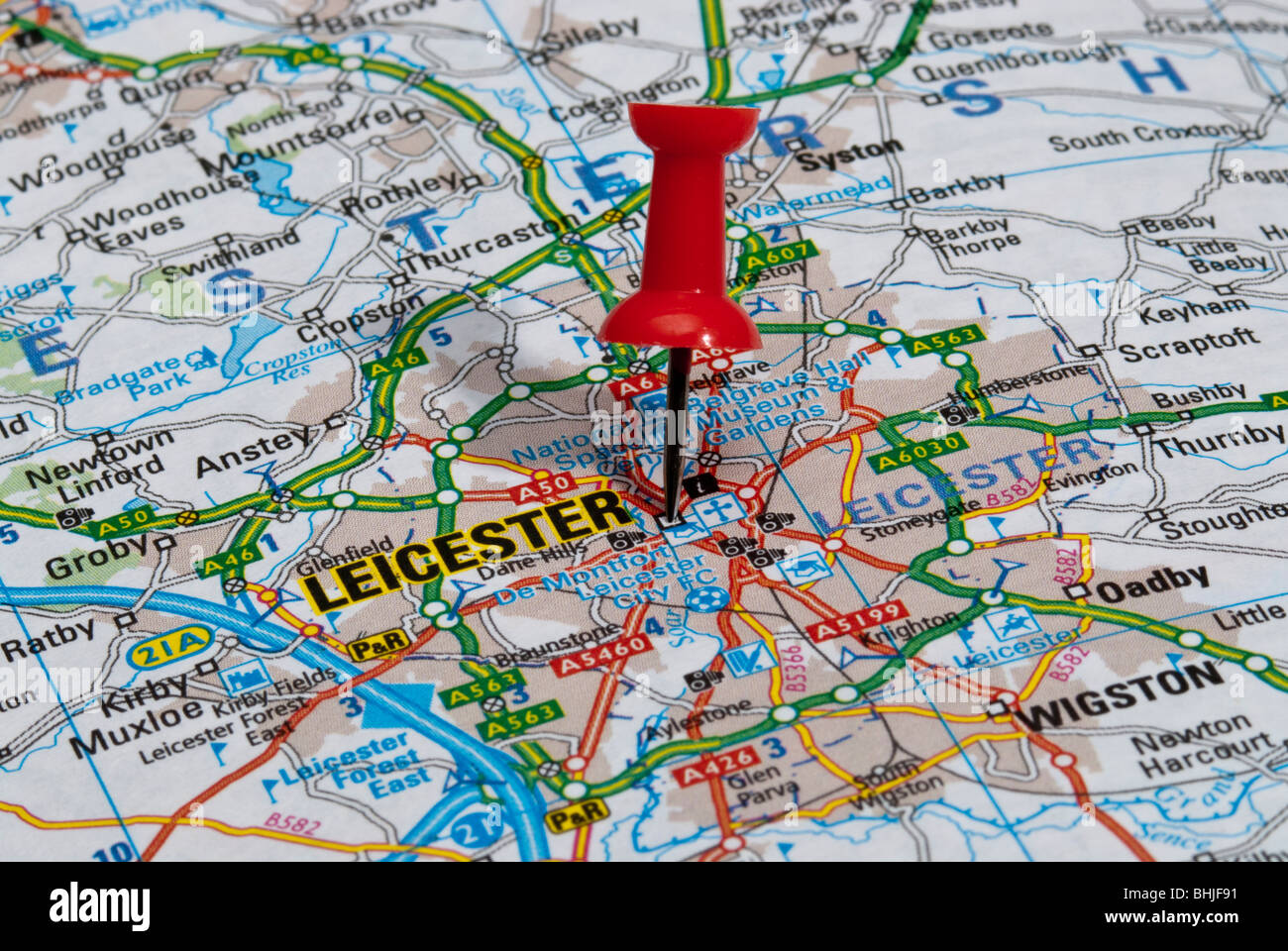 MAD Maps GOTBOS1 Get Outta Town Scenic Road Trips Map Boston red map pin in road map pointing to city of Boston Stock Photo .