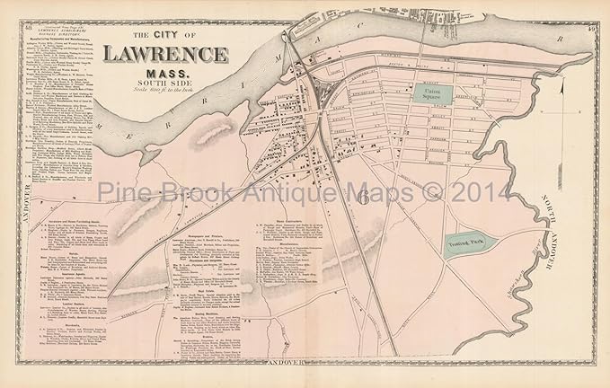 North Lawrence, Massachusetts 1872 Old Town Map Reprint Essex Co Von Kamecke Casters, Map Lawrence, MA 01841.