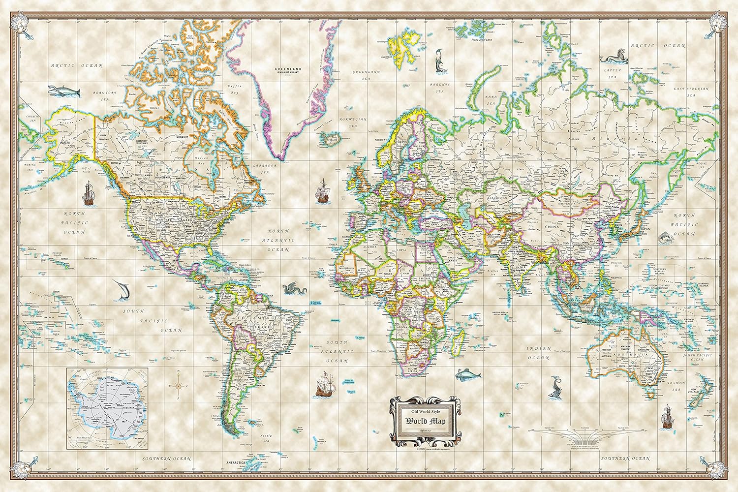 Amazon.com: Antique World Wall Map, Old World Style Poster Size World Map Old Style Prints at AllPosters.com.