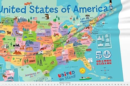 Amazon.com: Fabric Traditions""Map of the United States 35.5in The United States of America USA Map Fabric Silk Decor Poster .